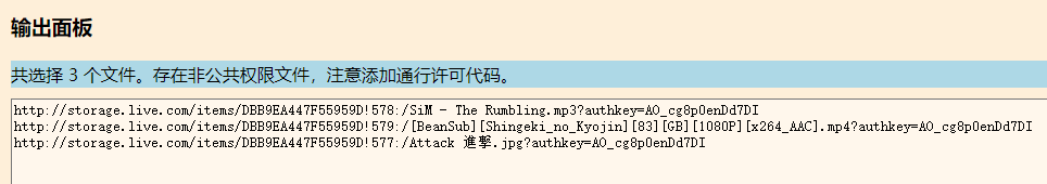 点击确认后,该项目就会直接得到三个文件的直链,而不需要一个个来获得直链。