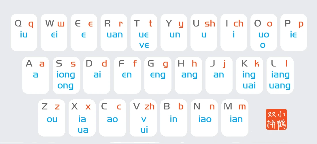 使用两个字母对汉字进行编码的方案,第一个字母表示声母,第二字母表示韵母,没有声母时用零声母代替单字母声母韵母键位不变,双字母声母和多字母韵母位置见 “双拼键位图”