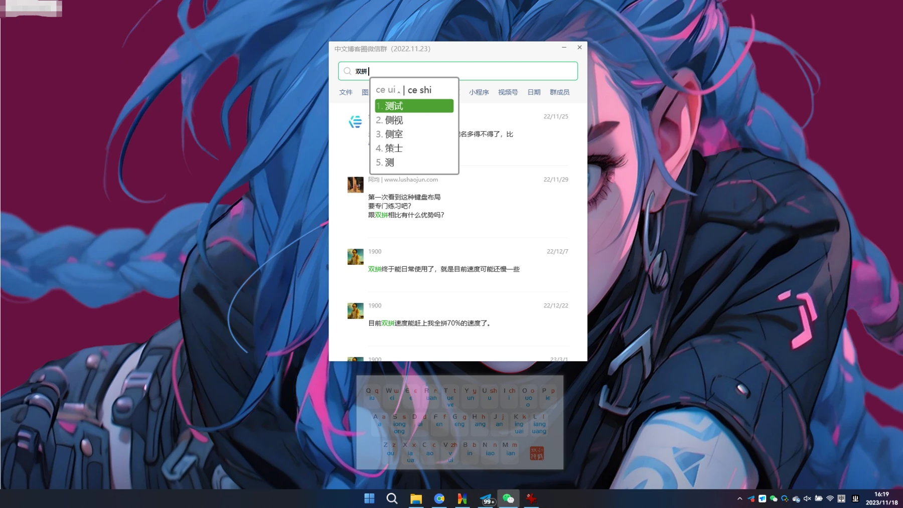 所以我从去年 12 月初开始便强迫自己使用「小鹤双拼」方案作为主力输入法,至今也快有一年了。从上面的聊天记录截图可以看到,我从刚开始的只能盲打「单字母韵母」,到渐渐可以盲打「双字母韵母」、「三字母韵母」,达到全拼 70% 的速度也不过花了短短两个星期的时间,入门门槛可以说是已经非常低了,基于这个体验我作为过来人是非常推荐用「全拼」的用户切换到使用「双拼」(这个双拼方案并不一定得是小鹤双拼)。