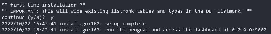 docker run -it -v /volume1/docker/listmonk/config.toml:/listmonk/config.toml:ro --rm listmonk/listmonk:latest ./listmonk --install