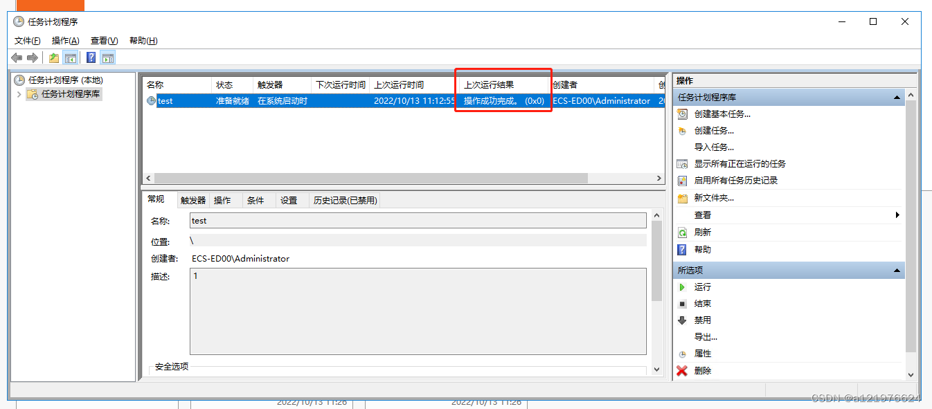 上述都设置完成后重启服务器,若预设的服务未启动,可以继续到计划中去查看执行情况: