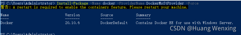 Install-Package -Name docker -ProviderName DockerMsftProvider -Force #安装 docker包