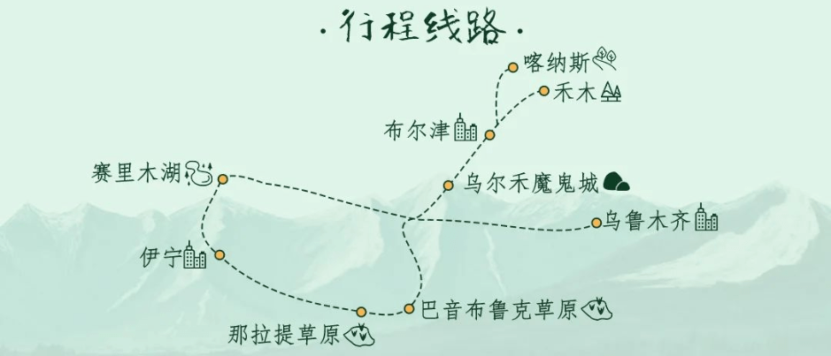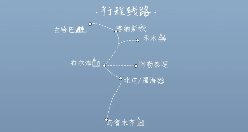 在巴音布鲁克草原,看日落时太阳落入人间的模样;品尝布尔津美食,听街边的三五声吆喝;沉迷喀纳斯,等微风吹来,松涛阵阵。