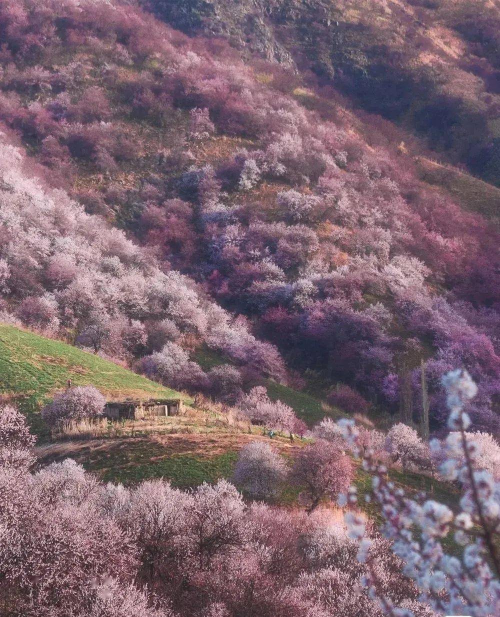 每年杏树花开之时,也就到了吐尔根杏花沟最美的时节,或粉或红或白的花瓣随风起舞,又簌簌洒落于绿色草甸上,漫山遍野,皆为此景,只一眼就能感受到那份浪漫和唯美。