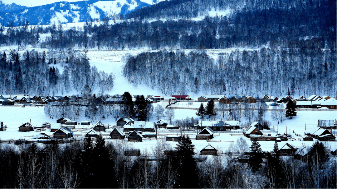 冬天的白哈巴被漫天的白雪包裹,木屋顶上沉积的厚厚的雪层,脚下一路嘎吱嘎吱劲儿劲儿的欢腾,捧一簇洁净的白雪轻轻吹散,享受静谧的村庄之旅。